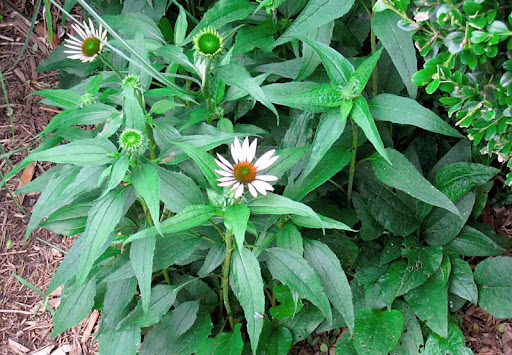 Looks like echinacea aka coneflower to me. The yard looks great!